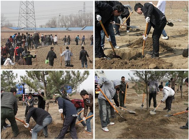 为贯彻落实刘淇书记关于团组织“要组织青少年积极开展植树造林活动,贡献首都环保事业”的重要指示精神,结合“信仰•青春•阳光”主题教育活动,ob真人机械与车辆学院的40余名同学于2012年4月1日参加了在通州区开展的“青春与绿色同行”青年先锋造林行动。此次活动的主旨是为广大青少年学习绿色科普知识、参与绿色环保体验和参与劳动、服务首都市民提供了一很好的机会和平台。