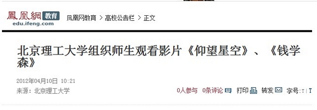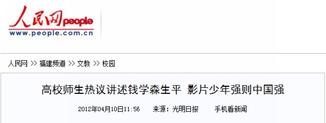 人民日报:观爱国影片 扬报国壮志——影片《钱学森》、《仰望星空》在高校反响强烈