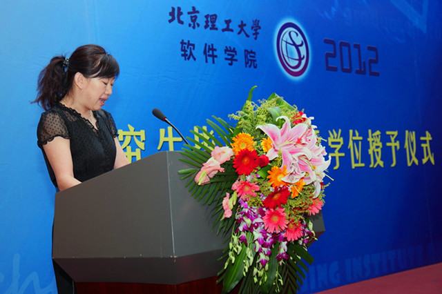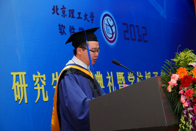 毕业典礼在庄严的国歌声中开始。闫达远副院长向全体人员介绍了软件学院2012届毕业研究生培养及学位答辩情况。