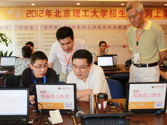 “同志们辛苦了!”随着亲切的问候,校长胡海岩院士于7月16日下午来到招生录取现场,在赵显利副校长,招生就业工作处处长李振键和纪委副书记、监察室主任张英的陪同下,检查指导了2012年招生录取工作,并看望慰问了奋战在招生录取第一线的工作人员。截至7月16日,ob真人已经完成了北京、山东、江苏、上海、内蒙古、吉林等17个省份本科提前批次、一批次的录取工作。