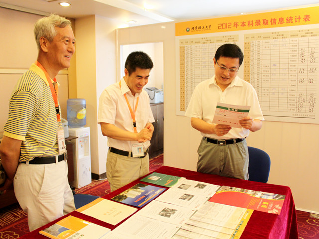 胡校长审阅了2012年录取通知书、重点生源中学喜报、招生录取工作手册、各省单页招生宣传指南、招生宣传口袋书等资料,对招生环节的细致、新颖和人性化给予了高度评价。