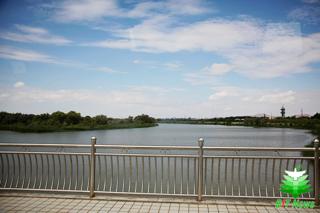 上午,科考队首先来到位于发射基地的生态公园。黑河从园中穿过,这条河被誉为“基地母亲河”滋养着基地中一切生命。队员们行走在河岸旁,看到了芦苇丛生,胡杨繁茂,一片生机盎然的景象。在这里,队员们顺利完成了胡杨样本的采集和黑河水样的采集工作。东风航天城中生态保护的巨大成功并不是偶然的,所以对黑河水样及周边土壤,植物的考察研究,对戈壁中防治沙漠化、盐碱化有指导意义。
