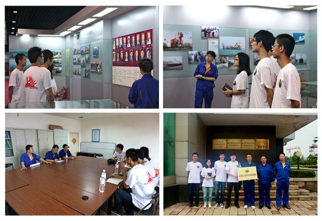 7月23日下午,社会实践团成员在工作人员的带领下参观了工厂各生产车间、船坞和码头。参观过程中,工厂先进的管理体制和一线工人严谨的工作作风给同学们留下了深刻印象。工作人员介绍,四八〇八工厂虽有上百年的历史,在技术和管理方面却与时俱进,工厂科学化、制度化、精细化的现代管理模式为推进装备保障标准建设、全面提升装备保障能力奠定了坚实基础。