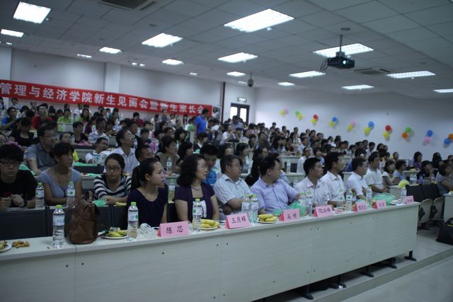 8月30日下午四点整,管理与经济学院在良乡校区综合教学楼A205召开了2012级新生见面会暨新生家长会。出席本次会议的有:管理与经济学院院长魏一鸣;管理与经济学院党委书记李金林;管理与经济学院副院长董沛武;管理与经济学院党委副书记、副院长仇芳;管理科学系副主任高慧颖;会计系主任陈宋生;技术经济系副主任张丽红;市场营销系主任倪跃峰、副主任孙淑英老师;应用经济系主任马明、副主任余晓泓;本科教学中心主任王月辉;管理与经济学院团委书记彭明雪;本科教学中心辛丽春、陈思老师,同时出席本次会议的还有2012级新生班主任和辅导员老师们。本次会议由管理与经济学院党委副书记、副院长仇芳主持。