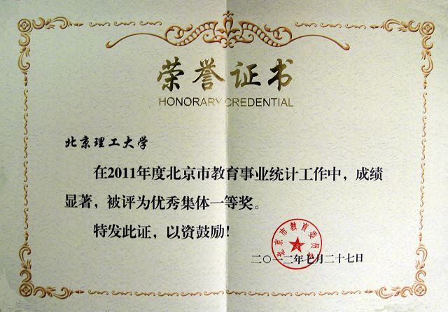 附:2011年度北京市教育事业统计工作优秀集体一等奖名单