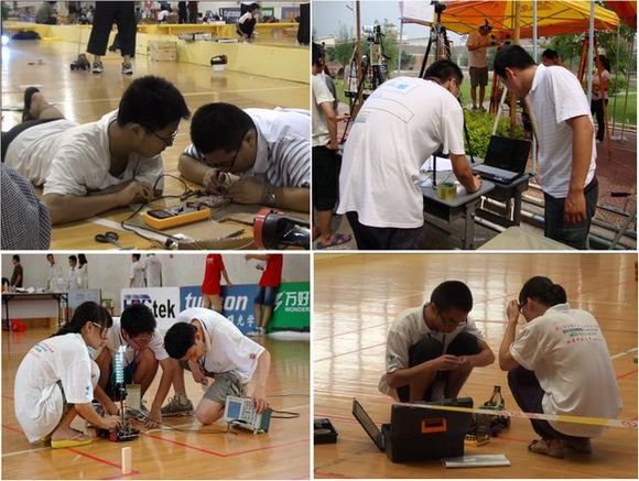 同学们在比赛现场调试设备