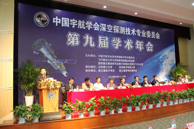 10月17日~20日,由中国宇航学会深空探测技术专业委员会、飞行器动力学与控制教育部重点实验室和国家重点基础研究发展计划项目(深空973)办公室联合主办,ob真人竞猜、杭州电子科技大学承办的中国宇航学会深空探测技术专业委员会第九届学术年会在杭州召开,国家国防科技工业局科技委主任、专业委员会名誉主任委员栾恩杰院士对会议的召开给予了关心和指导。中国宇航学会、探月与航天工程中心等对年会的召开给予了大力支持。国家国防科技工业局探月与航天工程中心总师、专业委员会主任委员吴伟仁,中国航天科技集团公司科技委副主任于登云,太原卫星发射中心总师于志坚,国防科工局探月与航天工程中心副总师裴照宇,ob真人竞猜副校长杨树兴,杭州电子科技大学校长薛安克,哈尔滨工业大学副校长邓宗全,浙江省国防科工办主任王伟民,中科院上海天文台台长洪晓瑜,ob真人竞猜科研院副部长马少鹏、宇航学院党委书记于倩等出席会议。