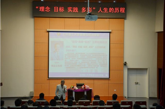 2012年11月5日晚7点,原国务院参事郎志正教授莅临我校良乡校区,在综教报告厅为我校管理与经济学院学生带来了一场以“‘理念 目标 实践 多彩’人生的历程”为主题的精彩讲座。到场的嘉宾有管理与经济学院分团委书记彭明雪老师、副书记吴文镝老师和辅导员赵航、陈铮老师。到场的同学均仔细听讲,认真记录,收获颇丰。