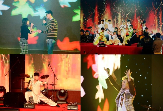 在今年的神秘嘉宾的献唱中,钟凯的一曲《你我一直都在》点燃全场,他与我校34届深秋歌会总冠军韩欣欣的合唱《你最珍贵》也让观众们大饱耳福。北京体育大学武术学院团总支艺术团的武术表演也非常精彩,观众们无不拍手称赞。第二位神秘嘉宾曹轩宾的出场让本次深秋歌会达到了高潮,他不仅和同学们合唱了《可惜不是你》,一曲《如果你爱我》也是深情款款,拨动心弦。在互动的过程中,曹轩宾与主持人一起畅聊深秋歌会,幽默风趣的话语引得观众阵阵掌声。