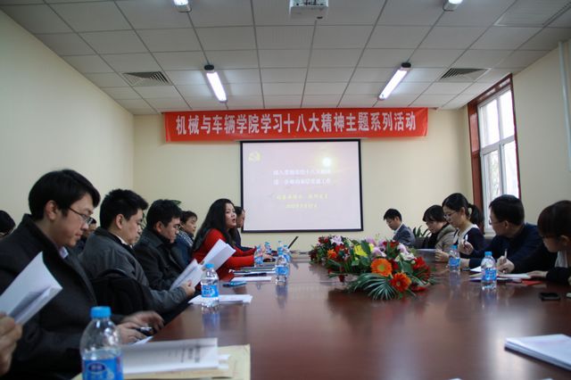 党的十八大胜利闭幕以来,为了大力宣传党的十八大精神,深入解读党的十八大提出的重大理论观点、重大方针政策、重大工作部署,机械与车辆学院党委认真筹划,精心组织,以进一步推动基层党组织建设为着力点,结合提升人才培养水平、增强科学研究能力、服务经济社会发展、推进文化传承创新等方面的工作,在基层党务工作者中掀起了学习宣传高潮。