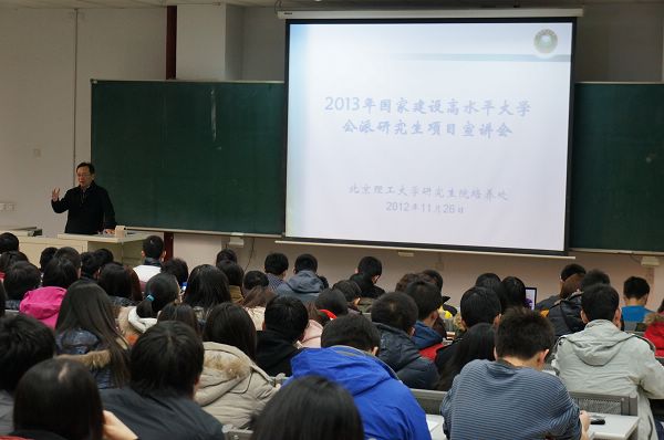 为了更好地提升我校研究生的国际化水平和视野,促进我校研究生培养国际化,为广大博士生硕士生申请公派留学提供指导,研究生院于2012年11月26日下午组织了2013年国家建设高水平大学公派研究生项目宣讲会。研究生院常务副院长兼培养处处长盛新庆教授和培养处副处长张景瑞教授参加了宣讲会。同学们听讲的热情极高,会议还没有开始,原定容纳160多人的研楼302教室的走道里就站满了没有座位的同学,不得不临时将教室调整到可容纳290人左右的301教室,但依然有站着听讲的同学。