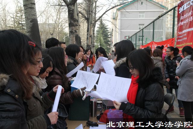 “青青法学院,巍巍正义园,雄雄报国志,拳拳在心间……”12月4日中午11点,在中关村校区和良乡校区同时唱响了这首悠扬动听的法学院院歌,拉开了“ob真人竞猜2012年普法宣传月”的序幕。