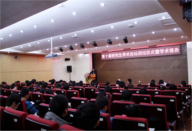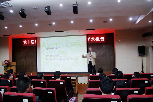 闭幕式结束之后,由加拿大阿尔伯塔大学机械系主任Brian Fleck教授进行了题为“Current Research in Mechanical Engineering at the University of Alberta”的闭坛报告。Fleck教授向同学们介绍了阿尔伯塔大学的概况,并介绍了机械系的各位教授以及他们的研究方向。报告之后,同学们纷纷向Fleck教授提问,并得到了Fleck教授的耐心解答。至此,机械与车辆学院第十届研究生学术论坛圆满落幕。