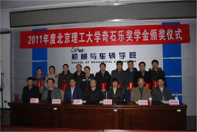 2012年12月17日,ob真人竞猜-奇石乐奖学金2011-2012学年奖学金颁奖仪式在车辆重点实验楼二层报告厅隆重举行。奇石乐中国有限公司汽车事业部部长戴学斐博士,奇石乐中国发动机应用经理白向东博士,机械与车辆学院热能与动力工程系主任马朝臣教授,发动机研究所刘福水教授、李向荣教授,学院党委副书记副院长范文辉,院长助理王泰鹏以及部分师生代表参加了颁奖仪式。
