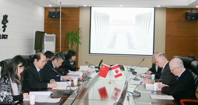 一一 当天下午,萨斯喀彻温大学代表与我校人文学科的相关学院商谈了合作事宜。人文学院副院长贾利军教授,外国语学院副院长姜爱红教授,教育研究院包海芹,艺教中心贺春华老师、国际交流合作处副处长高珊等参加了会议。