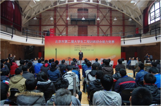 作为全国大赛的地区选拔赛,“北京市第二届大学生工程训练综合能力竞赛”于 2012年12月15、16日在清华大学举行。本次大赛的主题是“无碳小车越障竞赛”,分为“S”轨迹绕障和“8”字轨迹绕障两个项目,共有来自北京市16所高校的40余支代表队参加了此次比赛。整个比赛由方案报告评审、固定间距绕障比赛、快速原型徽标设计与制作和随机间距绕障比赛四个环节组成。