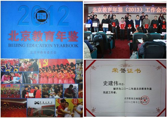 近日,我校年鉴工作接连取得可喜成绩。11月,由学校办公室负责组织编写的《ob真人竞猜年鉴2011卷》,在学校领导的大力支持下,在各部门的通力合作下,已面向社会公开出版发行。12月,我校参与的《北京教育年鉴》编纂工作受到北京教育志编纂委员会表彰,学校办公室史建伟被评为“2012年度北京教育年鉴先进工作者”。