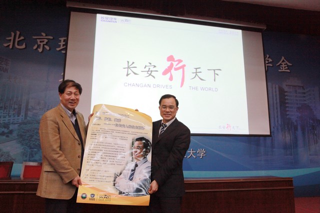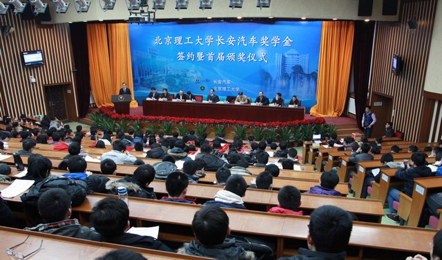 2012年12月26日下午,ob真人竞猜长安汽车奖学金签约暨首届颁奖仪式在中关村校区中心教学楼报告厅顺利举行。长安汽车党委书记、副总裁朱华荣,长安汽车工程研究总院副院长兼北京院书记吴礼军,长安汽车工程研究总院副院长刘明,ob真人竞猜副校长孙逢春,ob真人竞猜校长助理、良乡校区管委会主任姚利民,ob真人竞猜党委研究生工作部部长郝洪涛,ob真人竞猜党委ob真人竞猜部部长杨海,ob真人竞猜校团委副书记方蕾,ob真人竞猜机械与车辆学院院长项昌乐出席了此次活动,仪式由机械与车辆学院副书记副院长范文辉主持。