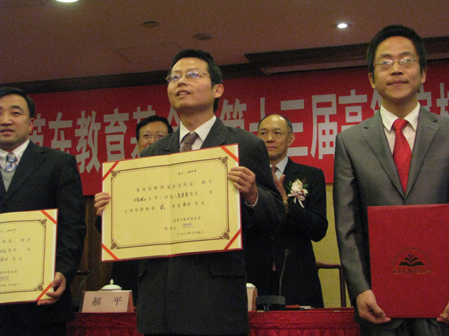 2012年12月26日上午,霍英东教育基金会第十三届高等高等院校青年教师基金及青年教师奖颁奖大会在京举行。全国政协副主席阿不来提·阿不都热西提,中央统战部副部长林智敏,教育部副部长郝平,国务院港澳办副主任周波,霍英东教育基金会理事长霍震寰先生以及国际奥委会委员、香港奥委会主席、霍英东教育基金会副理事长霍震霆先生等出席了大会并为获奖教师代表颁奖。我校马宏宾教授应邀作为获奖教师代表出席。