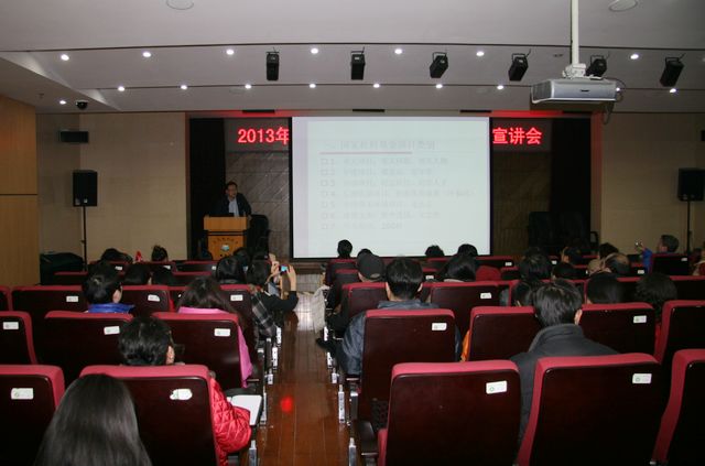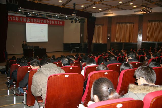 2013年1月11日下午,2013年度国家自然科学基金申报动员和政策宣讲会在七号楼报告厅召开,国家自然科学基金委员会计划局郑永和副局长、国际合作局美大及东欧处魏芹项目官员,校长助理兼科研院常务副院长陈杰教授、及相关职能部门和学院教师代表200余人出席了本次动员会。
