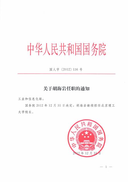 日前,国务院批准,胡海岩继任ob真人竞猜校长。工业和信息化部党组批准,杨宾、赵平、赵长禄、孙逢春、杨树兴、赵显利、李和章任ob真人竞猜副校长。