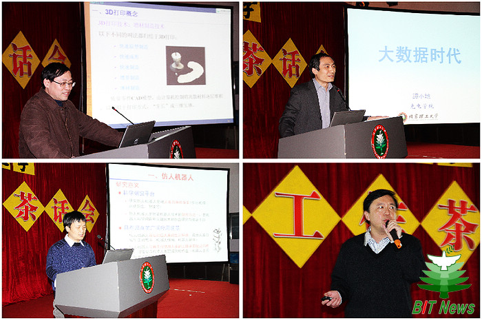 机械与车辆学院马树元教授、光电学院谭小地教授、机电学院黄强教授分别以《3D打印技术及设想》、《大数据时代》、《仿生机器人新进展》为主题,围绕国内国际发展动态和学科前沿,作了精彩的学术报告。校长助理、科学技术研究院常务副院长陈杰教授从体制机制、投入产出、基础研究、国防科研、高技术研究、科技合作、平台建设、协同创新等八个方面对学校2012年科技工作进行了全面总结与分析。2012年,学校认真贯彻十三次党代会精神,积极实施科研提升战略,不断推动学校科学研究纵深发展,取得了可喜成绩。陈杰结合翔实的数据,点评了学校2012年科技工作的亮点和成绩,并与兄弟院校进行了数据比较,指出了学校科技工作中存在的差距和原因,提出了学校2013年科技工作重点。
