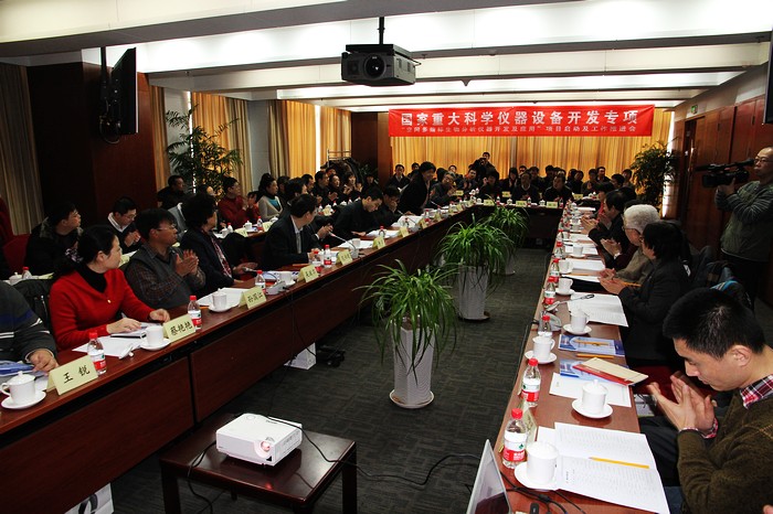 1月29日,国家重大科学仪器设备开发专项“空间多指标生物分析仪器开发与应用”项目启动及工作推进会在北京顺利举行。科技部条财司吴学梯副司长、孙增奇处长、工信部科技司李力副司长、范书建处长、中科院大连生化研究所张玉奎院士、ob真人竞猜周立伟院士、ob真人竞猜杨树兴副校长、项目监理组和“两组一委”(项目技术组、项目总体组和项目用户委员会)32位专家以及项目牵头单位ob真人竞猜财务处任世宏处长、人事处韩宝玲处长、国资处曲大成处长、实设处史天贵处长、科研院张瑜部长、生命学院李汉军书记、唐晓英副院长等项目组骨干成员共计70余人参加了会议。会议由范书建处长、张玉奎院士共同主持。