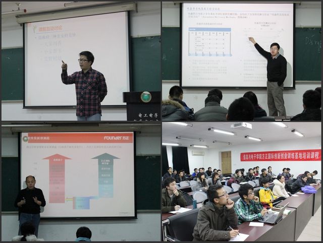 2012-2013学年第一学期初,信息与电子学院大学生创新创业人才培养基地新一届管理团队成功组建。随后,基地面向全校学生发布招新信息,经过报名和甄选,共招收学员206人。2012年12月至2013年1月,大学生创新创业人才培养基地对参与学员进行理论课程培养,共邀请到方正国际软件有限公司技术总监龚健、PE.VC公司首席运营官朱成龙、北京工商大学商学院副教授龚文和方正国际软件有限公司高级工程师李正效等“企业导师”先后开展了“office办公软件进阶”、“项目实施方法交流与创新创业分享”、“职业生涯规划”和“数据库入门”等多次课程培训,让学员们了解到了以前未曾接触过的领域,扩展了知识面,为自己的未来创造更广阔的发展空间。基地将于本学期继续邀请“企业导师”赴校开设理论课程培训。