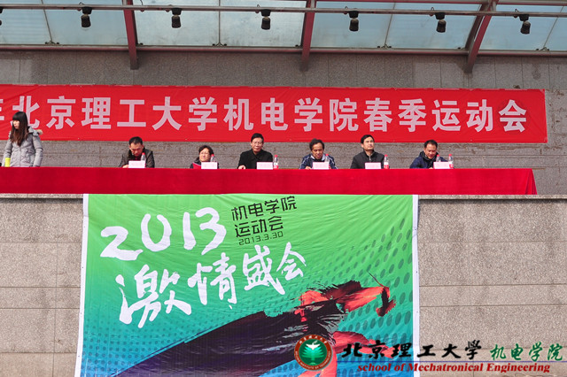 2013年3月30日上午9点30分,ob真人机电学院2013学年春季运动会在中关村校区主体育场正式拉开帷幕。机电学院院长焦清介、学院党委书记栗苹、学院副院长张庆明、学院副院长门建兵、学院副院长副书记杨瑞伟老师、学院副书记陈军出席了本次运动会。