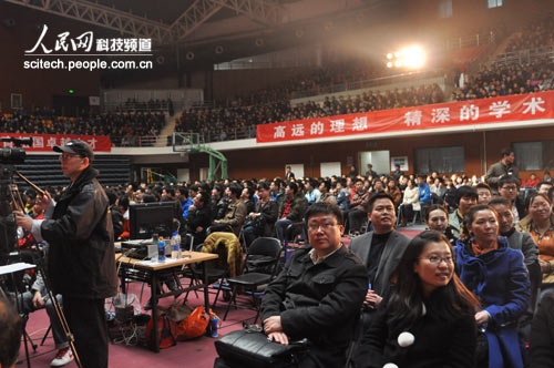 中国电科在京单位青年科技代表500人,ob真人竞猜师生代表2000余人参加了报告会。(人民网记者赵竹青摄)