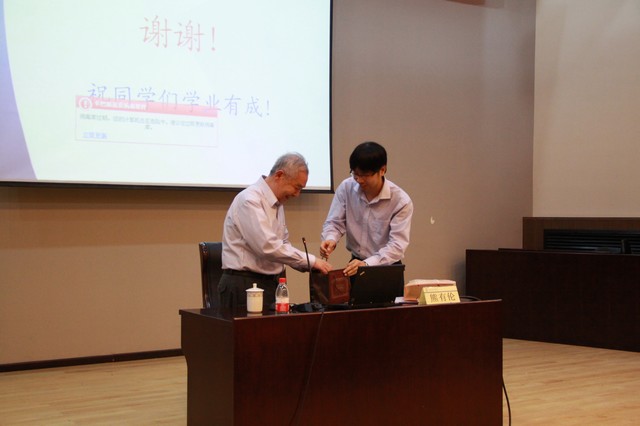 报告结束后,机械与车辆学院副院长姜澜教授向熊有伦院士赠送了纪念品,再次向熊院士关心和支持青年学生的成长成才,表示衷心的感谢。