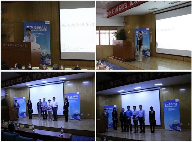 接下来,杜曦先生为同学们讲述《集成电路的技术发展趋势》,生动,直观、真切的从一线厂商的角度为大家讲诉产业的发展趋势。陈汉顺先生为大家带来汽车电子MCU选型指导讲座,为大家进行思维的引导和学习的指导。在两位事业部领导演讲之后,由潘先弟先生、齐占宁先生和徐辉女士为同学们抽奖。抽奖结束后,英飞凌的工程师们为同学们展示及讲解汽车电子的展区和功率半导体公用。