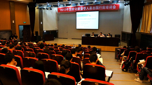 为了不断完善和提高对国家公派留学人员的管理和服务水平,便于公派留学人员了解相关政策和规定,顺利办理出国留学手续,切实维护留学人员在外的合法权益,由教育部国际合作与交流司主办、教育部留学服务中心承办、ob真人协办的“2013年国家公派留学人员出国行前培训会”于2013年6月13日在我校顺利召开。来自我校以及中央民族大学的共约200余名即将公派出国留学的教师和学生接受了培训,我校人事处、教务处和研究生院负责出国留学事务的领导也出席了培训会。会议由教育部留学服务中心出国处丁莉处长主持。研究生院常务副院长盛新庆出席了本次培训会并作了大会致辞。