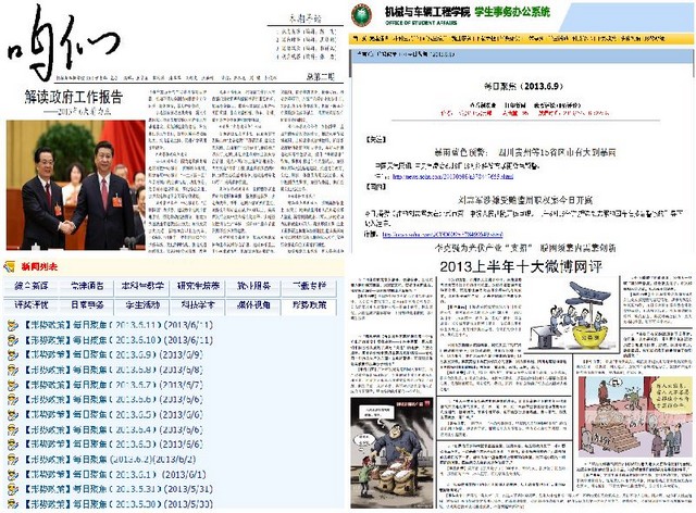 为了让学生及时了解最新的国内外时事,学院在学生事务平台开辟“形势政策”版块,各学生党支部负责每日更新时政要闻,以实现形势政策教育的常态化和系统化。3063党支部小报《咱们》中“头版头条”、“国内时事”、“国际风云”版块的内容更是受到了同学们的肯定和欢迎。