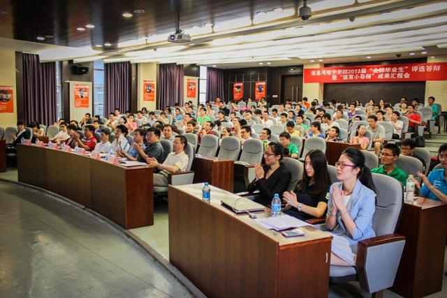 随后,大会举行了“金牌毕业生”候选人答辩会。史玥婷、张剑坤、李丽日等10名来自2013届“德育小导师”中的佼佼者依次上台进行了答辩。参与答辩的“德育小导师”或成绩优异、竞赛突出,或统筹兼顾,学习工作两不误,或始终坚持不懈,追寻梦想……他们有着不同的经历,在不同的领域有着出色表现。他们不仅以优异的专业成绩、杰出的竞赛结果、学游多国的经历和ob真人竞猜的完美成果体现了信息与电子学院学生品学兼优的优秀品质,也以他们对学术、德育工作等多方面不懈追求的精神感染了所有人。
