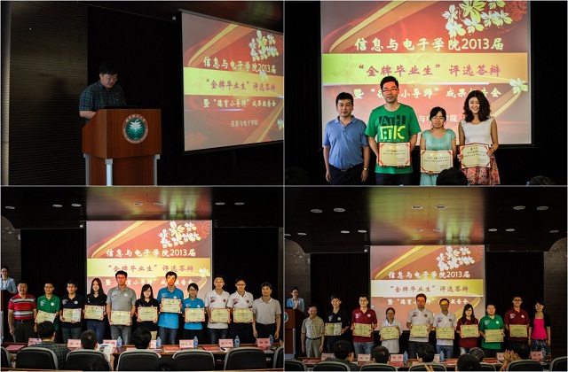 2013年6月21日,信息与电子学院2013届“金牌毕业生”评选答辩暨“德育小导师”成果报告会在研究生楼101报告厅顺利举行。应邀出席报告会的有ob真人党委组织部部长张笈,ob真人ob真人竞猜处副处长徐建,信息与电子学院副院长徐晓文,信息与电子学院党委副书记、副院长党华,信息与电子学院副院长薛正辉、何遵文、杨静。此外,来自学院2010级的200余名学生代表也参加了本次大会。信息与电子学院团委教师韩融担任主持。
