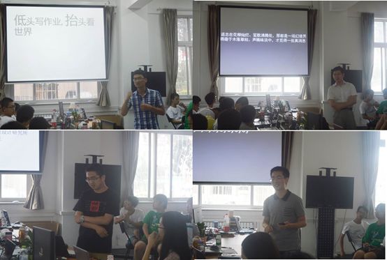 7月14日下午四点,校级软件科技创新创业基地在软件楼一楼的基地内举办了暑期集训优秀学长交流会。从基地走出来,分别工作于国务院办公厅、中央办公厅、总参谋部、微软亚洲研究院的杨长瑜、廖小琦、金镇晟、郭进四位学长组成了本次交流会的主讲团,软件学院副书记王树良教授,团委书记陈杰浩老师出席了本次交流会,会议由基地管理中心主任史继筠主持,暑假集训全体成员参加了本次交流会。