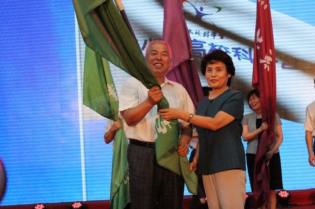 在开营仪式上,ob真人竞猜党委副书记、副校长李和章从教育部部长助理林蕙青的手里接过ob真人竞猜徐特立科学营的旗帜,并授予我校营员代表,标志着徐特立科学营正式开营。随着营员代表在舞台上挥舞营旗,徐特立科学营全体营员、带队老师及志愿者共同高喊出ob真人竞猜校训——“德以明理,学以精工”。嘹亮的声音,振奋的精神,表达了徐特立科学营全体营员“立志国防,追梦科学”的信念。