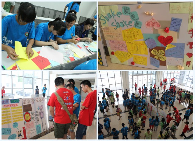 启发培养实践动手能力是徐特立科学营的一项重要任务。开营伊始,科学营给每个小组布置了一项科学小任务,鼓励每个营员动手实践,说出自己的创新设想,完成自己的科技作品,提出对已有科技成果改进的奇思妙想。在参观实验室、创新工作坊等科技实践活动的熏陶下,各组营员全员参与,集思广益,积极投入到科学小任务的探究工作中,利用彩笔、彩纸等工具,将自己的科学梦想绘制成精美的展板。在7月29日举办的“徐特立科学营科技成果展示会”上,各组营员通过对展板内容进行讲解,展示小组风采,放飞科技之梦。