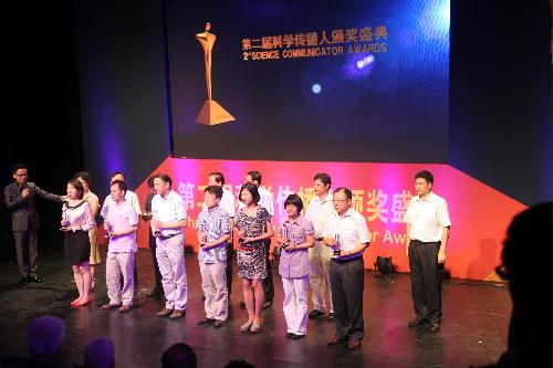 近日,第二届科学传播人颁奖典礼在国话先锋剧场隆重举行,同时在现场颁发的还有第六届“北京市优秀科普作品奖”,第十二届全国政协副主席、中国科协主席韩启德等领导出席了典礼, 2012年度国家最高科技奖获得者郑哲敏等十几位两院院士也出席了典礼并为获奖者颁奖,我校出版社出版的《小布丁科普知识-漫画丛书》荣获 “北京市优秀科普作品奖最佳奖”,社长林杰出席了颁奖大会,并代表出版社上台领奖。