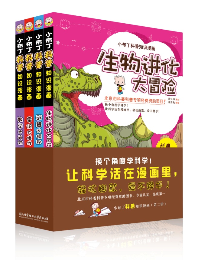 《小布丁科普知识漫画》丛书共两辑八册,内容涉及天文、地理、植物、动物、人体等领域,每册书围绕一个科普主题,以青少年熟悉的漫画明星“小布丁”及他的好朋友们为主角,知识面覆盖广泛,涵盖生物进化、自然灾害、武器、动物、植物、能源、数字以及日常生活中可应用的科学常识等多方面。本书选择的以探险旅程为故事背景,藉由生动有趣的漫画形式,轻松带领孩子一同进入充满惊奇的探险旅程,把枯燥难懂的科学知识变得自然有趣,并在每章节中附有知识讲解部分,将以漫画形式表现出的零散的知识点加以总结归纳,让孩子在欢笑中获得更完整且清晰的科学知识。