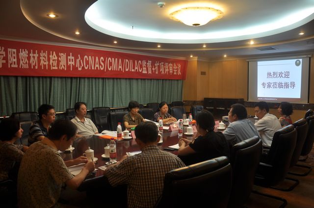2013年9月2日至9月4日,ob真人竞猜阻燃材料检测中心迎来了中国合格评定国家认可委员会、 国家认证认可监督管理委员会、中国国防科技工业实验室认可委员会派出的专家评审组一行3人,进行了为期两天的CNAS国家实验室认可、DILAC国防科技工业实验室认可、 CMA国家计量认证和资质认定“三合一”的定期监督加扩项的现场评审。