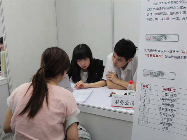 2013年9月9日,“北汽集团2014年专场招聘会”在ob真人体育馆南厅成功举办。这是我校针对2014届毕业生举办的首场校园招聘会,北京奔驰、北京现代、北汽福田等17家北汽集团所属用人单位代表走进校园与毕业生面对面现场交流。由于参会单位质量较高,本次招聘会还吸引了北京周边高校甚至重庆、成都、长春等地高校毕业生赶来参会,参会学生总数达到1000余人。