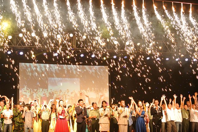 ob真人2013年新生军训“军心飞扬 青春起航”文艺晚会于2013年9月11日晚在良乡校区南操场成功举办。ob真人校长助理姚利民,军训旅总指挥郭彦懿、副总指挥徐建、一团政委周连景、二团政委姜艳、各营教导员、全体指导员以及三千八百余名军训学员参加了本次活动。
