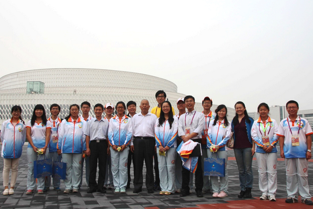 在我校志愿者服务的G3门区,李和章副书记详细询问了我校志愿者的岗位分布、服务内容、服装交通、饮食休息等具体情况。在听取主场馆片区负责人及骨干志愿者的细致介绍后,李和章副书记深有感触地说:“同学们在园博会服务持续时间特别长,工作强度大,是当前学雷锋、讲奉献的行动,你们都是好样的。”随后,李和章副书记和姚利民助理为志愿者们赠送了“小V蜂”徽章,并将提前准备的中秋月饼分发给大家。