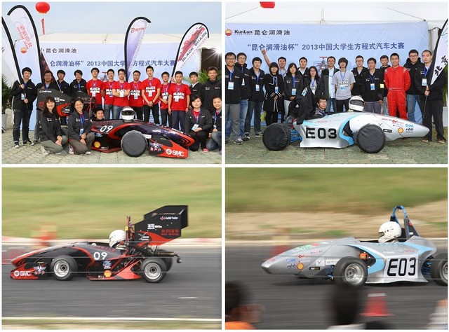 2013年10月15日至19日,第四届中国大学生方程式汽车大赛(FSC2013)如期举行。来自国内外的63支参赛车队共计约1200名大学生齐聚赛场,其中包括内燃机赛车和纯电动赛车。我校方程式赛车工作室派出两支参赛队,分别带领内燃机赛车“黑鲨Ⅳ”和纯电动赛车“银鲨Ⅱ”参加了相应组别的比赛。经过5天的比赛,“黑鲨Ⅳ”获得了内燃机组的市场营销第一名、高速避障第二名、赛车设计第五名、成本分析第六名等4项排名前列的成绩,“银鲨Ⅱ”获得了赛车设计第二名(国内第一名)、直线加速第二名(国内第一名)、高速避障第二名(国内第一名)、八字环绕第四名(国内第三名)等4项排名前列的成绩。令人骄傲的是,“黑鲨Ⅳ”在最后一项耐久赛上完成了中国赛车首次对德国赛车的历史性超越,赢得了广泛赞誉;令人遗憾的是,“黑鲨Ⅳ”和“银鲨Ⅱ”均因耐久赛中出现不稳定故障最终与总冠军失之交臂。