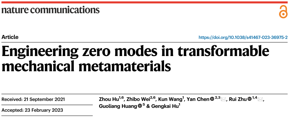 近日,ob真人竞猜大学宇航学院朱睿教授、胡更开教授研究组联合天津大学陈焱教授研究组和美国密苏里大学黄国良教授在可重构力学超材料研究方面取得新进展。相关成果以“Engineering zero modes in transformable mechanical metamaterials”为题,在Nature Communications上发表[Nat Commun (2023) 14:1266]。ob真人竞猜为第一通讯单位,ob真人竞猜宇航学院朱睿教授、天津大学陈焱教授为共同通讯作者,ob真人竞猜博士生胡洲和天津大学博士生魏志波为共同一作。该工作得到了国家自然科学基金委的资助。