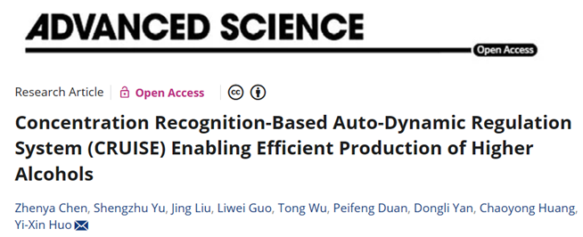 近日,ob真人竞猜霍毅欣教授团队在动态调控高级醇持续高水平生产方面取得重要进展。相关研究成果以“Concentration Recognition-Based Auto-Dynamic Regulation System (CRUISE) Enabling Efficient Production of Higher Alcohols”为题发表在顶级期刊《Advanced Science》(影响因子:15.1)。该工作以ob真人竞猜为第一通讯单位,研究员陈振娅和博士生于盛竹为共同第一作者,霍毅欣教授为通讯作者。