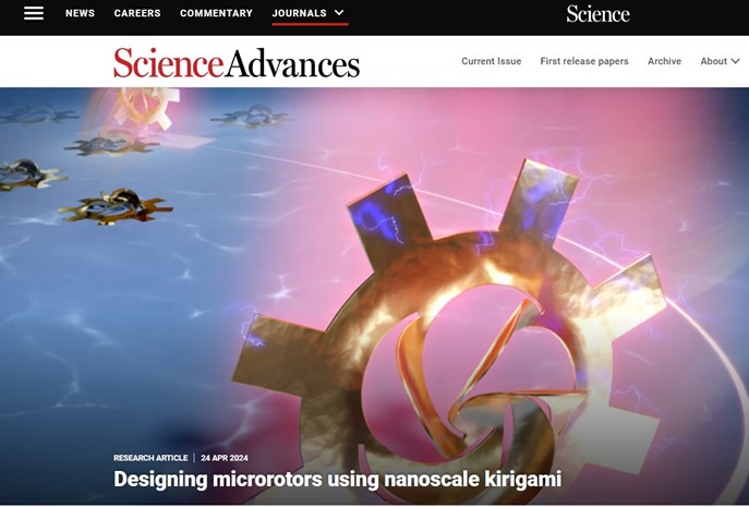 图5:纳米剪纸结构的多物理场协同调控研究(Nano-kirigami/origami fabrications and optical applications, Appl. Phys. Lett. 124, 160501 (2024), Front Cover, doi: 10.1063/5.0199052)。