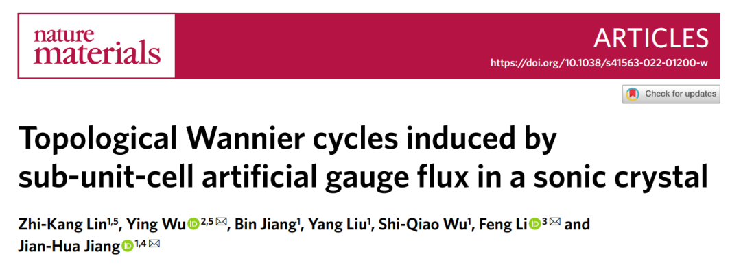 2022年3月22日,苏州大学蒋建华教授团队联合ob真人竞猜李锋教授和华南理工大学吴迎博士,在Nature Materials发表题为Tolological Wannier cycles induced by sub-unit-cell artificial gauge flux in a sonic crystal的文章。研究团队利用3D打印技术,设计了一种具有螺位错的声子晶体,在实验上实现了局域赝磁通和一维拓扑边界态。其物理机制来源于实空间与倒空间的双重拓扑特性。